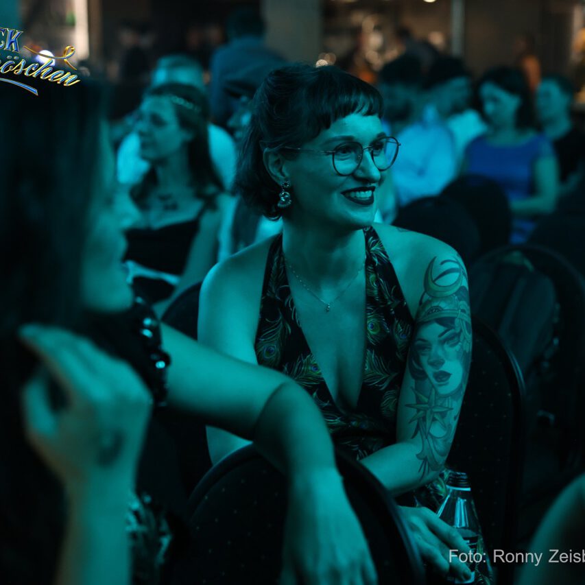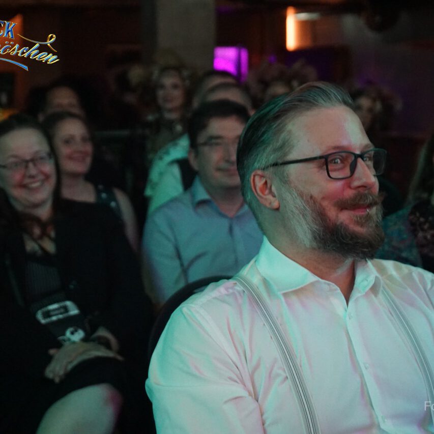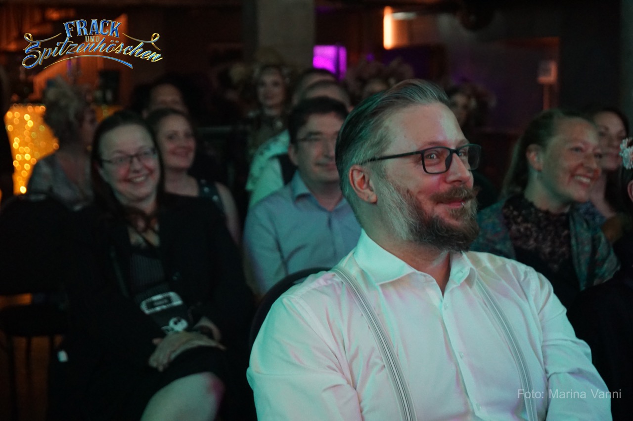 Mit gewitzter Zunge und einem Bauchladen voller Verlockungen flaniert sie durch die Pause – stets bereit, mit einem Augenzwinkern und den schönsten Stücken aus dem Frack & Spitzenhöschen-Kabinett zu verführen.