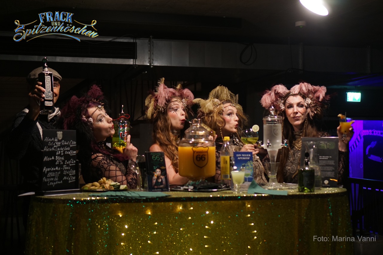 Cocktails und Longdrinks wie der Passion66 gehören aber mittlerweile auch zum Repertoir jeder gut bestückten Absinthbar – wie der in unserer Show.
