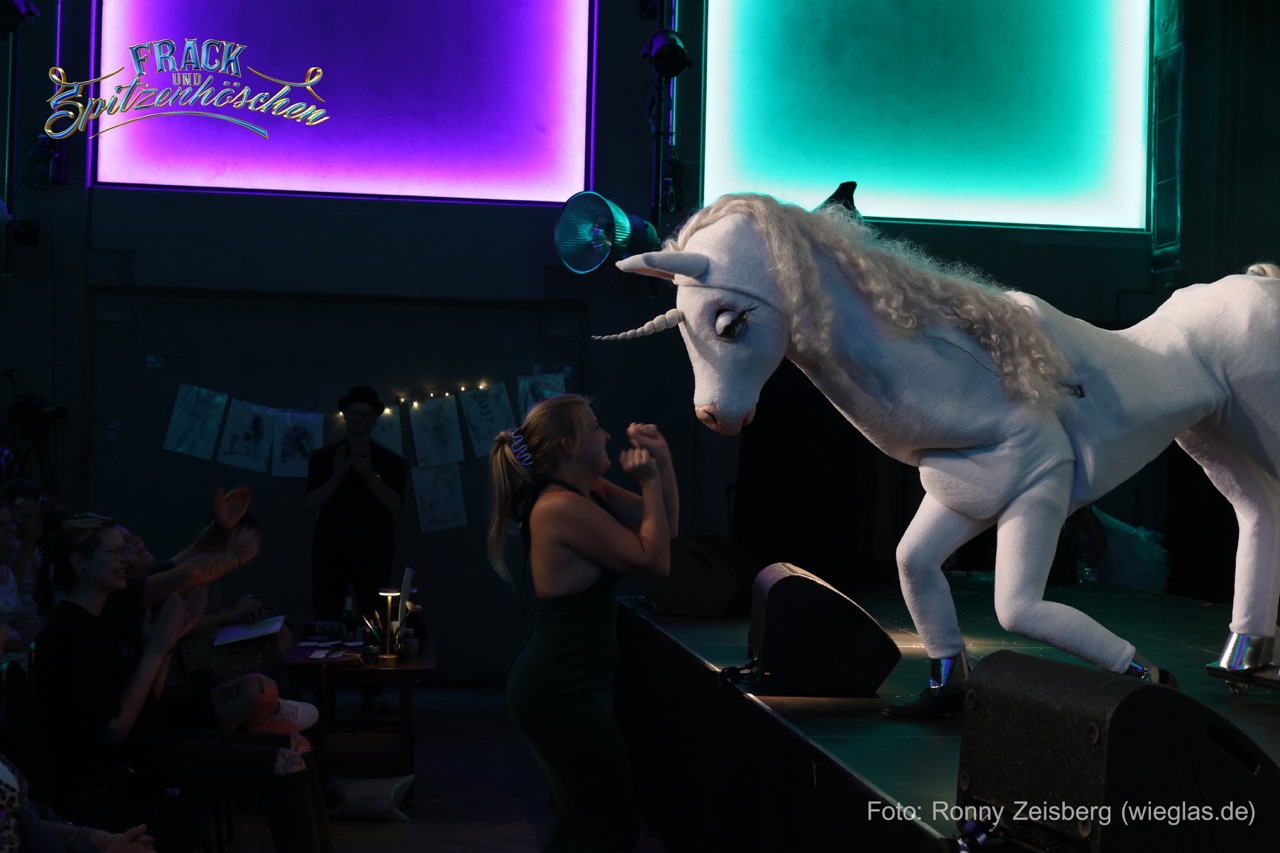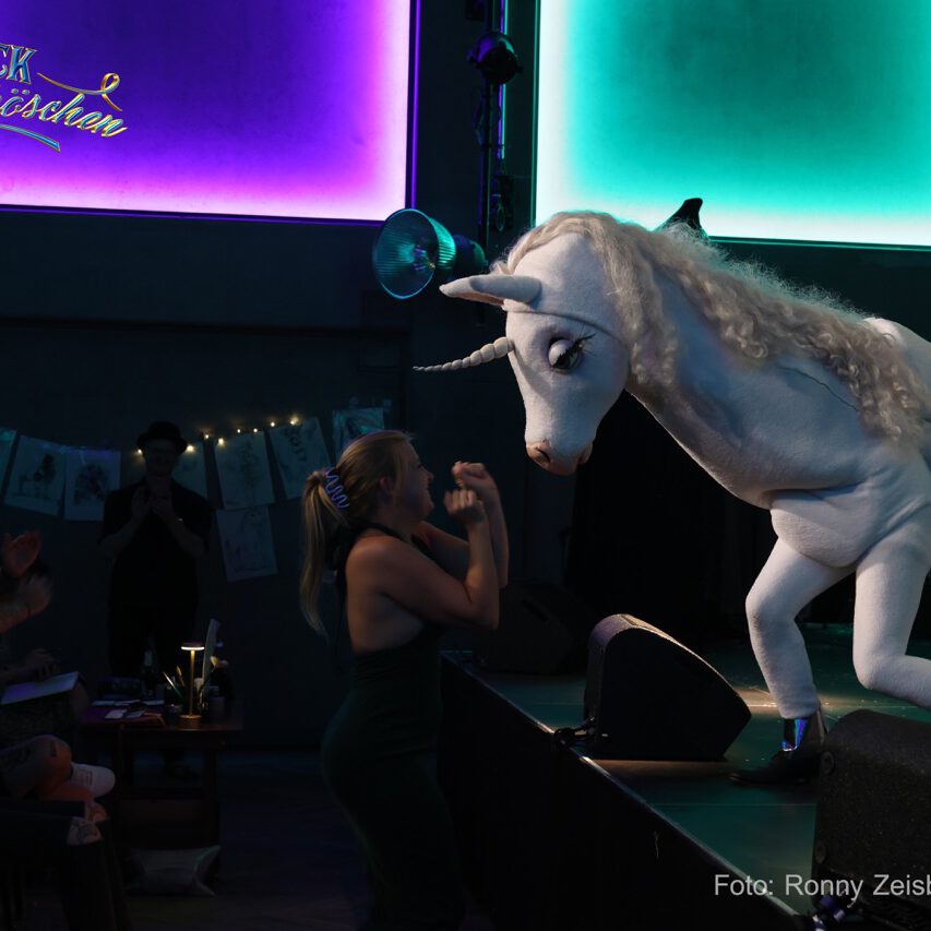 „Danny“ ist mit viel Liebe handgemacht von der Fee selbst, wie auch alle ihre Kostüme. Und wenn das lebensgroßes Einhorn gerade mal nicht das Feenreich unsicher macht, ist es Musiker und einer der Autoren der Show.